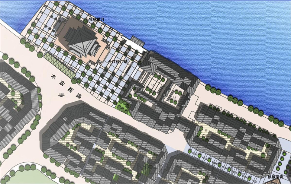 在老城中,桥西与桥东根据各自特色分担不同功能。桥西以西湖风景和东坡文化为核心,历史上曾是文人骚客的观光胜地,其展示性和游览性更为突出;而桥东以老街、码头和东江文化为核心,曾以繁荣的商业氛围,依江而居的民俗文化著称,其参与性、体验性更强,可建设成为集“江、城、街、楼”为一体的滨江风貌展示区和传统生活体验区。