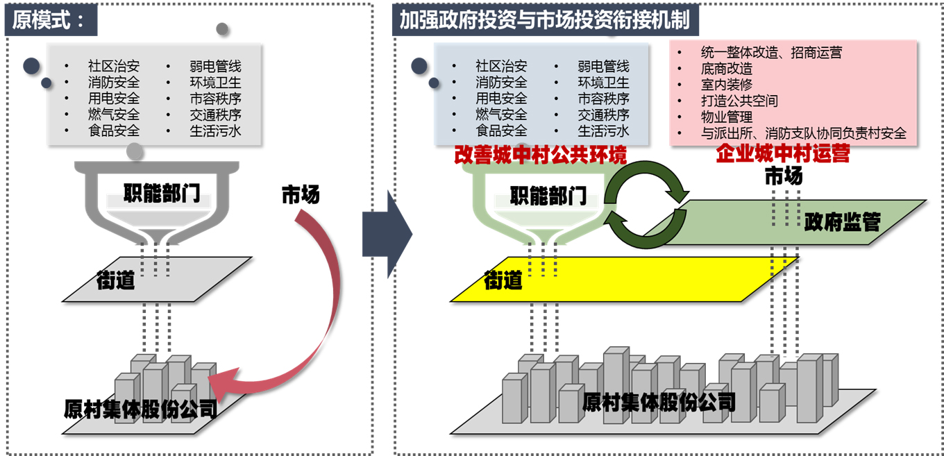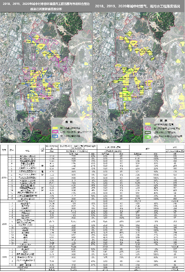 本次规划梳理出全面治理范围的“城中村”综合治理大台账与“城中村”市容环境提升计划项目地图,为后续街道统筹“城中村”综合治理及各单位落位建设项目提供“空间统筹”抓手,实现了管理创新。本次研究深刻反思“城中村”综合治理项目、管线项目、道路交通项目等工程造成道路反复挖掘、施工扰民现象产生的根本原因,结合市、区“多规合一”平台建设工作,以“项目计划+空间统筹”为抓手,完善区政府投资项目储备库建立机制,优化整合各类“城中村”综合治理项目建设内容,合理安排项目建设时序,从项目实施层面整合形成“一张蓝图”,切实提高政府投资效能。