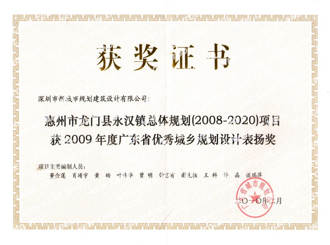 惠州市龙门县永汉镇总体规划(2008-2020)-表扬奖企业荣誉时间: